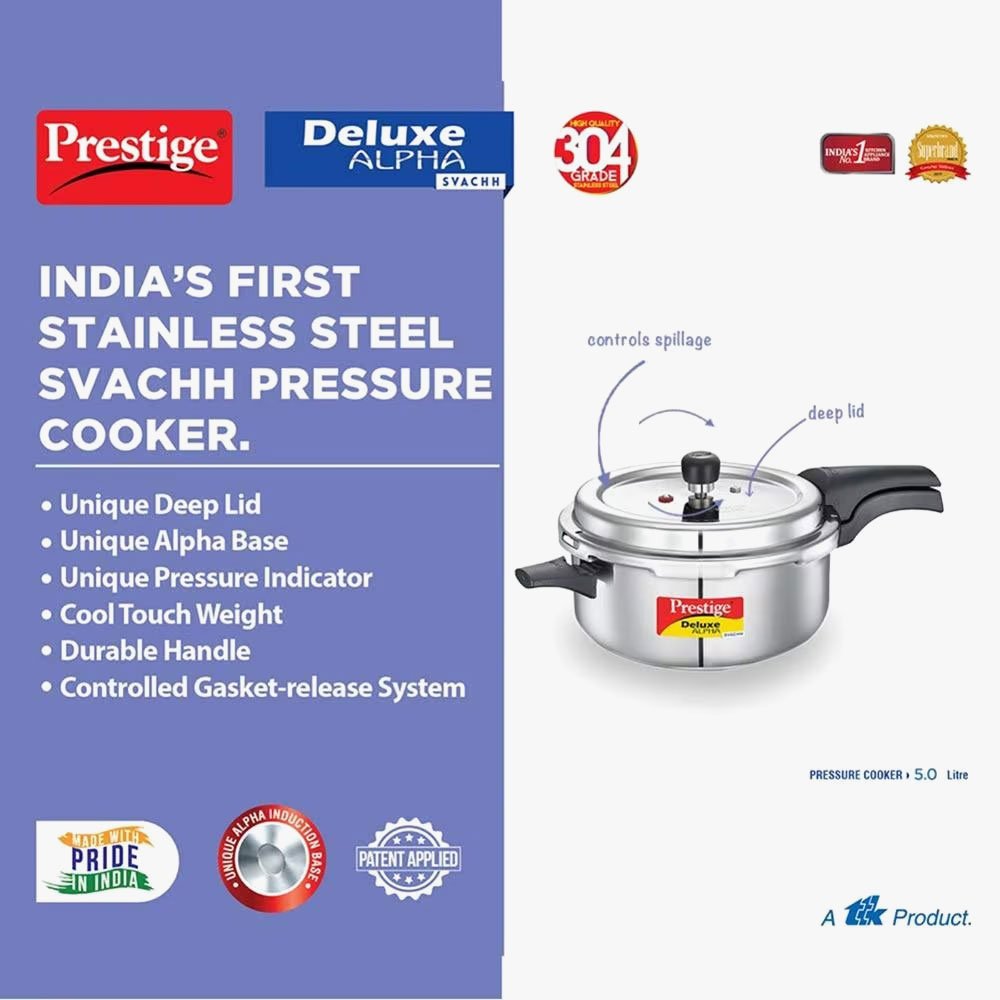Deluxe Stainless Steel Pressure Cooker 5 L